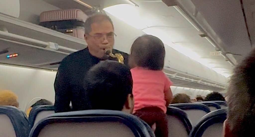 What do you do when your holiday flight is delayed over an hour after everyone is already on board? Endure cramped leg room and impatient people? What if you could help lighten the mood instead? Army band vet and retired middle school band director Wayne Hoey used his love of music to do just that…